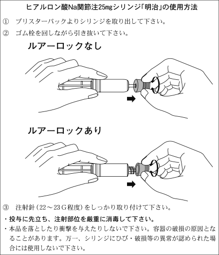 参考資料:- ヒアルロン酸Na関節注シリンジ「明治」 電子添文