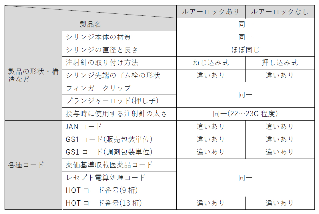 ヒアルロン酸Na関節注シリンジ「明治」のルアーロックあり・ルアーロックなしの違いを教えてください。