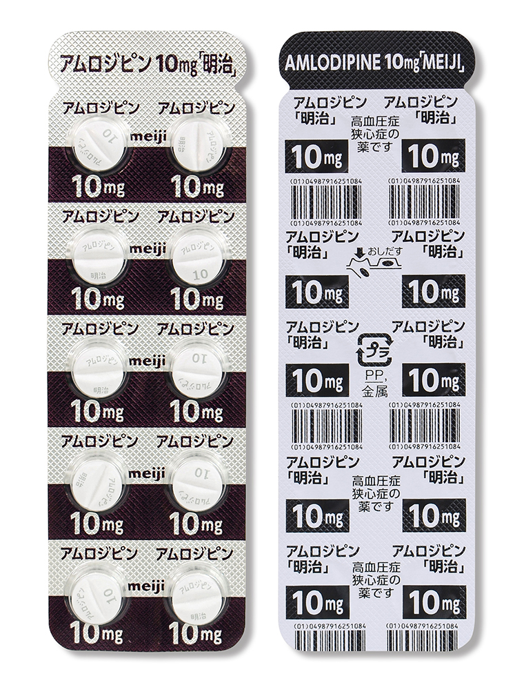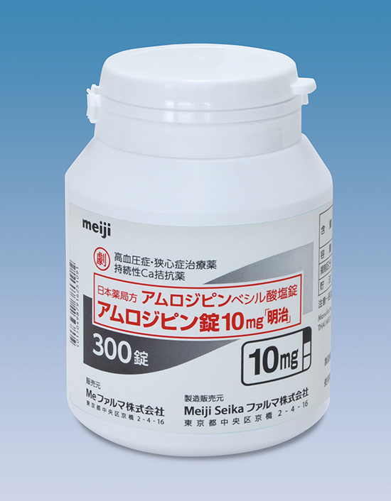 | Me ファルマ製品 | アムロジピン錠10mg「明治」 | 製造販売元 Meiji Seika ファルマ株式会社 販売元 Me ファルマ株式会社 |