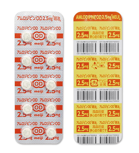 ホーム > 医療関係者の皆様へ > 製品詳細 [アムロジピンOD錠2.5mg「明治」] > 製品写真 [アムロジピンOD錠2.5mg「明治」]