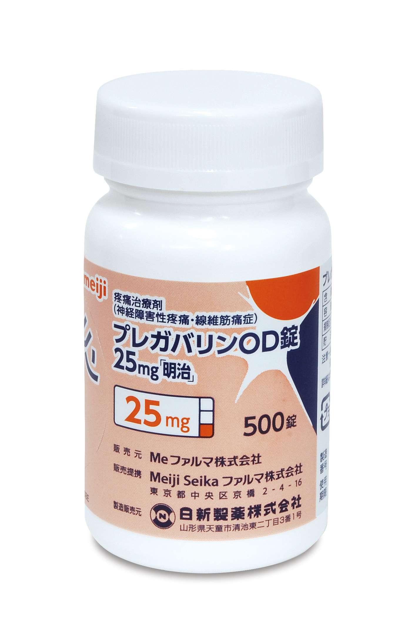 | Me ファルマ製品 | プレガバリンOD錠25mg「明治」 | 製造販売元 日新製薬株式会社 販売元 Me ファルマ株式会社 |