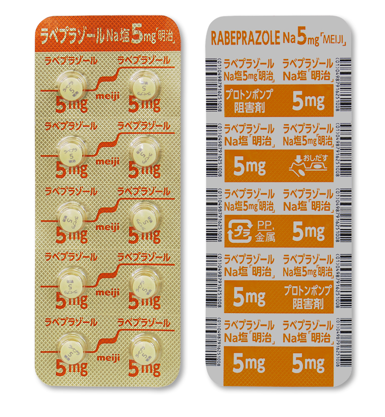 | Me ファルマ製品 | ラベプラゾールNa塩錠5mg「明治」 | 製造販売元 Meiji Seika ファルマ株式会社 販売元 Me ファルマ株式会社 |