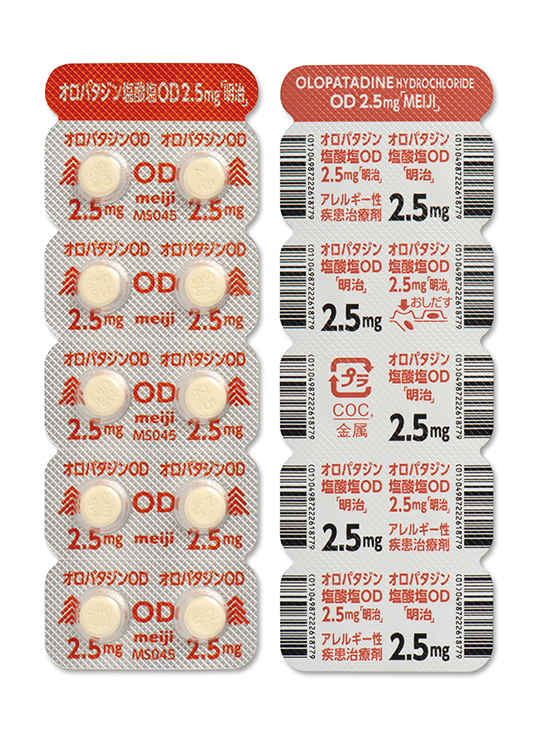 ホーム > 医療関係者の皆様へ > 製品詳細 [オロパタジン塩酸塩OD錠2.5mg「明治」] > 製品写真 [オロパタジン塩酸塩OD錠2.5mg「明治」]
