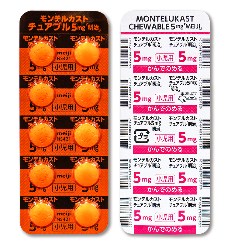 | Me ファルマ製品 | モンテルカストチュアブル錠5mg「明治」 | 製造販売元 日新製薬株式会社 販売元 Me ファルマ株式会社 |