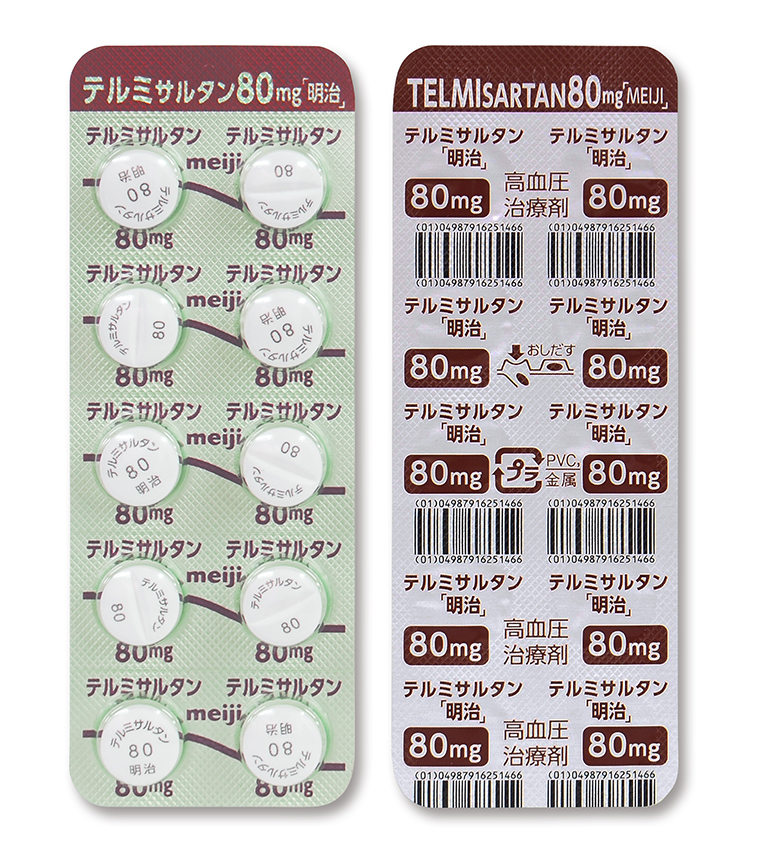 | Me ファルマ製品 | テルミサルタン錠80mg「明治」 | 製造販売元 Meiji Seika ファルマ株式会社 販売元 Me ファルマ株式会社 |