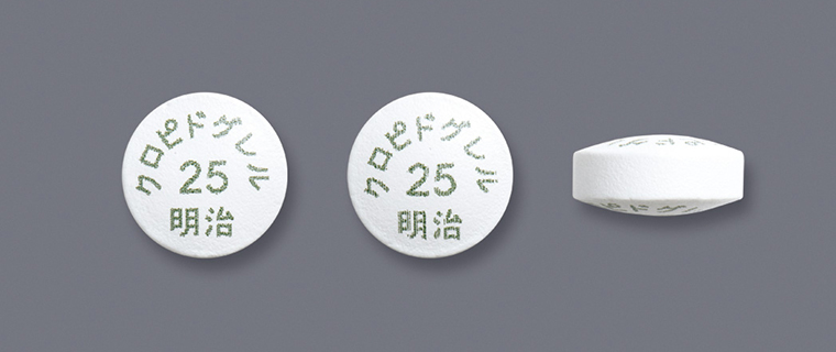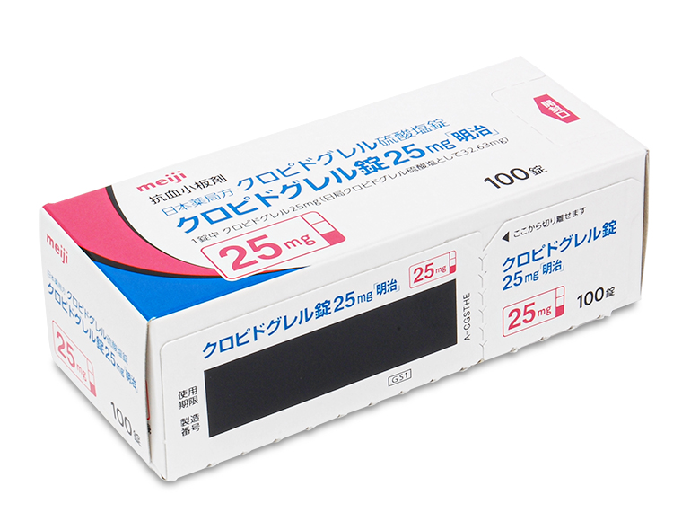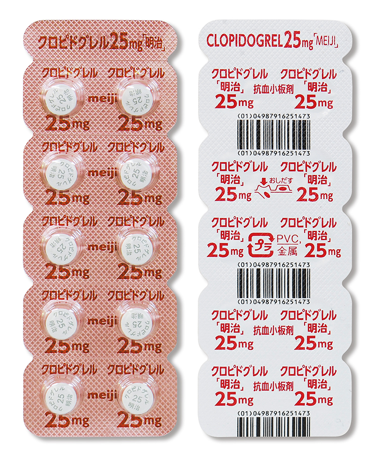 | 成分・含量 | 1錠中 クロピドグレル25mg(日局クロピドグレル硫酸塩として32.63mg) | ||||