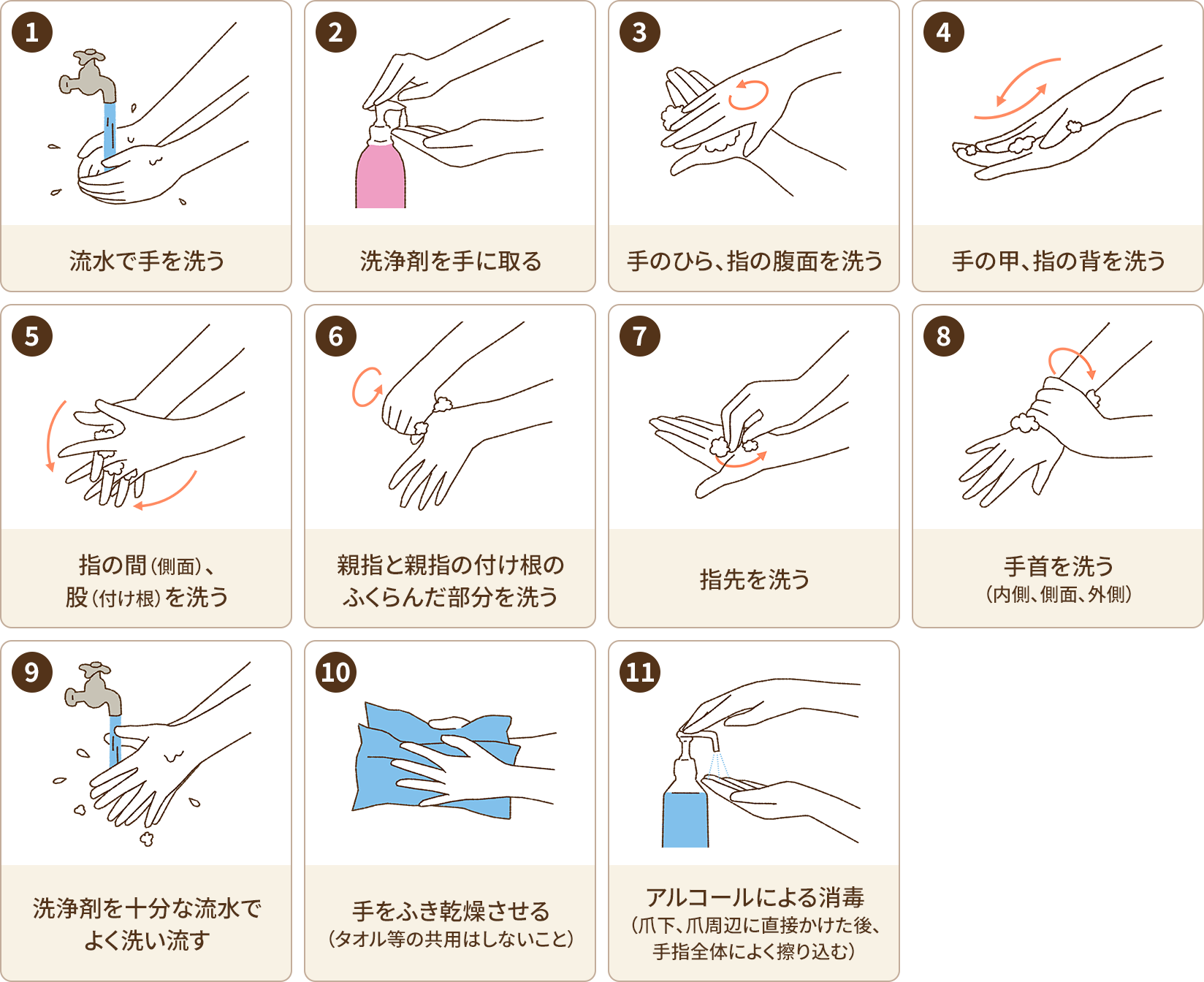 手を洗う時間も重要です。20秒は少し長い時間ですが、「ハッピーバースデー」の歌を2回歌うようなイメージでしっかりと洗いましょう。