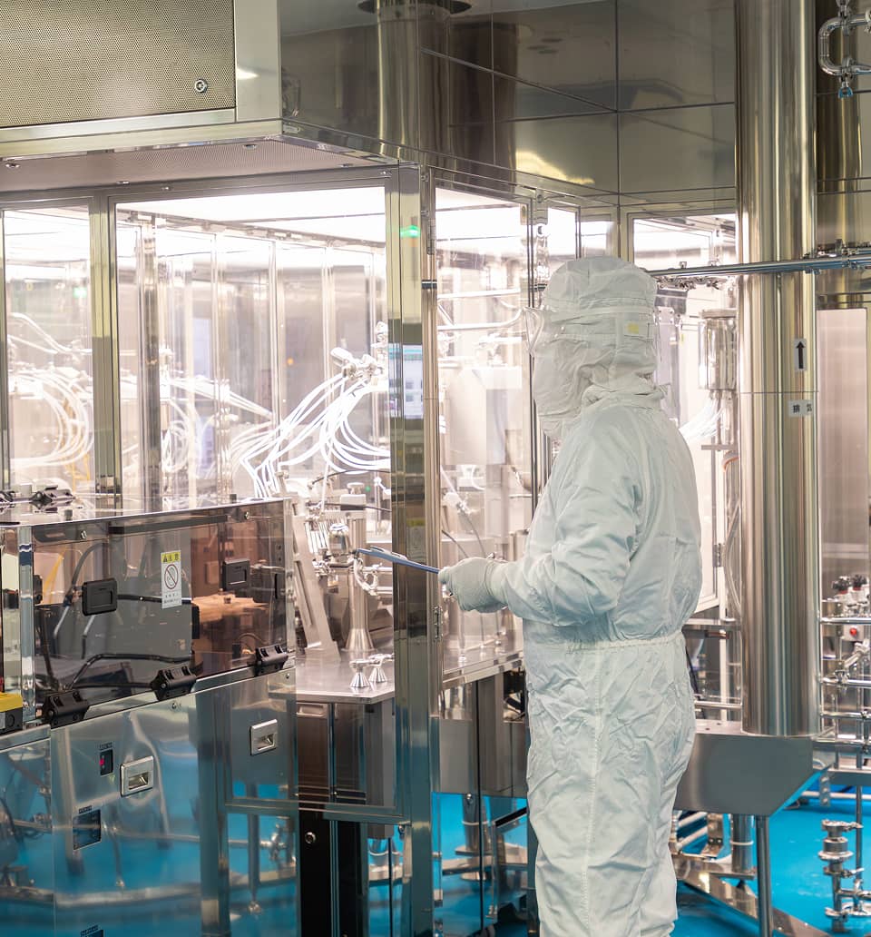 - 無菌製剤の製造エリアでは、年間700万ユニットの供給実績を持ち、小スケール製造にも柔軟に対応いたします。